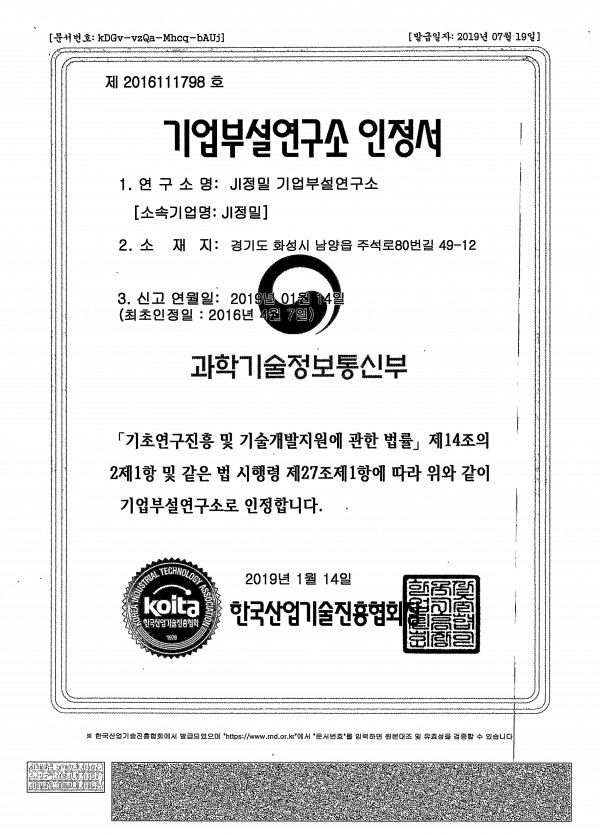연구소 인정서 페이지 정보 작성자 JI정밀 댓글 0건 조회 185회 작성일 20-11-10 15:47 목록 본문 이전글소재.부품.장비 전문기업확인서 21.04.23 다음글클린사업장인정서 20.11.10 댓글 0 댓글목록 등록된 댓글이 없습니다.